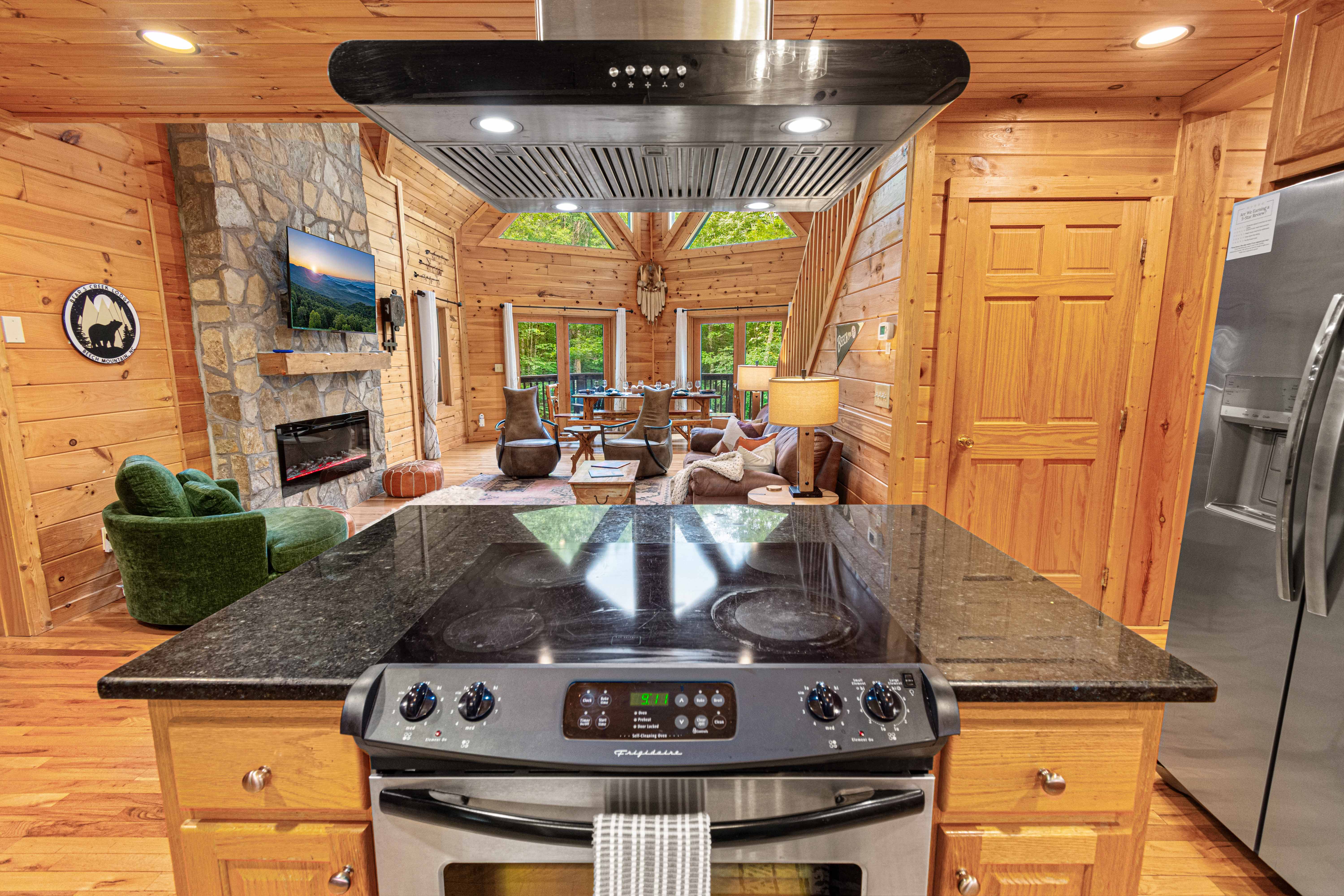 Enjoy the spacious great room with 25' vaulted ceilings a 50" Roku tv and cozy fireplace for gathering around with family and friends.