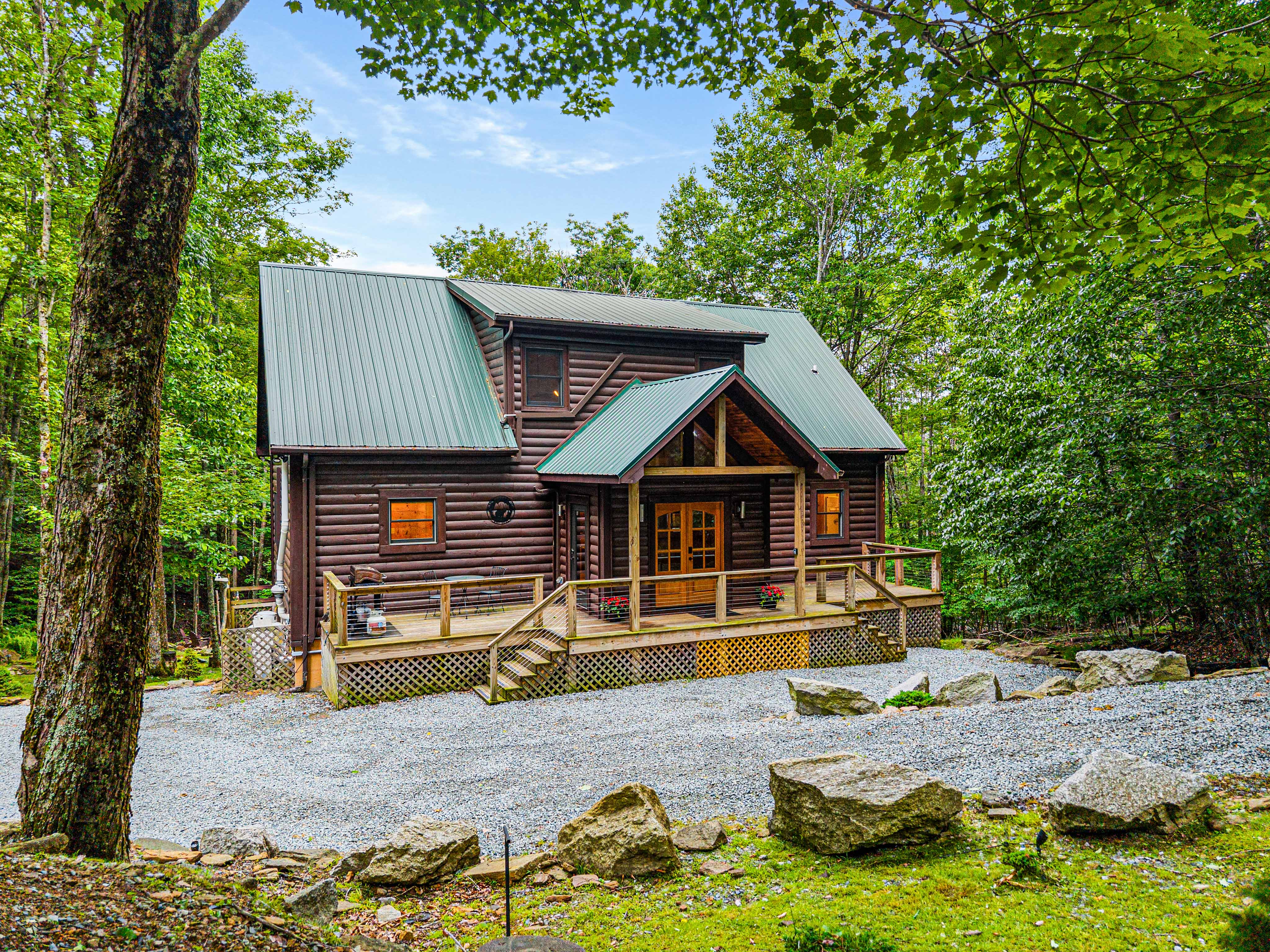 A charming log cabin nestled on two private wooded acres, where peace and seclusion meet convenience—just five minutes from the ski slopes. Surrounded by towering trees, it’s a cozy mountain retreat that blends rustic charm with modern comfort, perfect for quiet mornings and fireside evenings after a day of adventure.